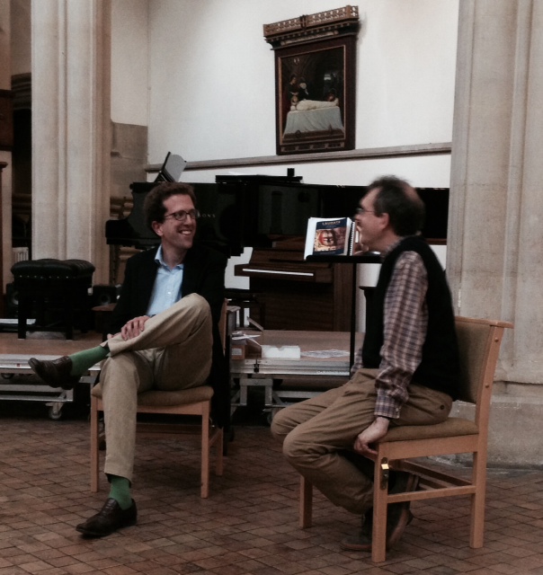 The twist for them tonight is that they are being conducted by the composer and this is the first time he has ever conducted the work in performance. They are accompanied by the Aquinas trio (Violin, Cello, and piano) and clarinetist Thomas Hull with Soprano soloist Elin Thomas. All of these folks are big names in the U.K.